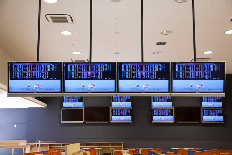 5面マルチビジョンで白熱のレース中継をお楽しみ下さい。レースの情報が逐一チェックできる5面マルチビジョンで選手やレースの白熱したレースをお楽しみいただけます。